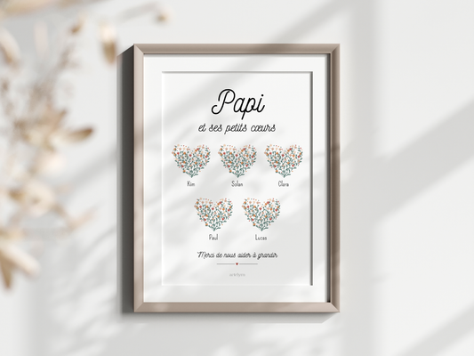 Affiche "Papi et ses petits cœurs..."