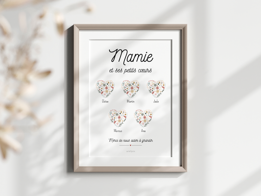 Affiche "Mamie et ses petits cœurs..."